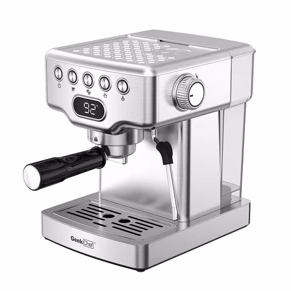None 2- Cup Silver 20 Bar Espresso Machine with Milk Frother, 1.8L Water Tank, Stainless Steel