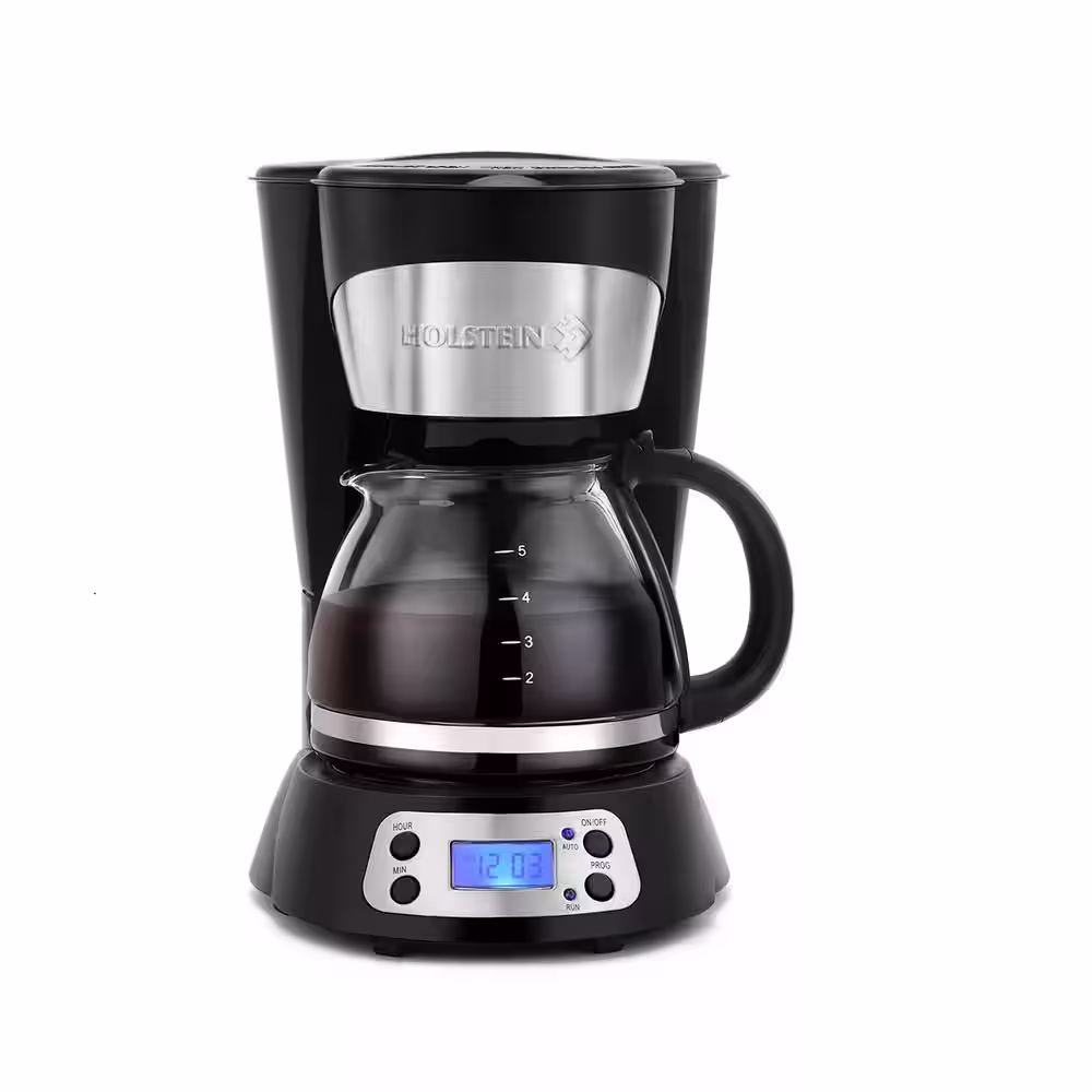 HOLSTEIN HOUSEWARES 5-Cup Black Digital Coffee Maker