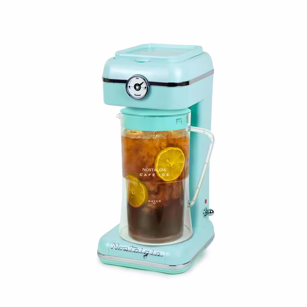 Nostalgia CLIT3PLSAQ 12 Cup Classic Retro 3 qt. Iced Brew Tea and Drip Coffee Maker with Plastic Pitcher, Aqua