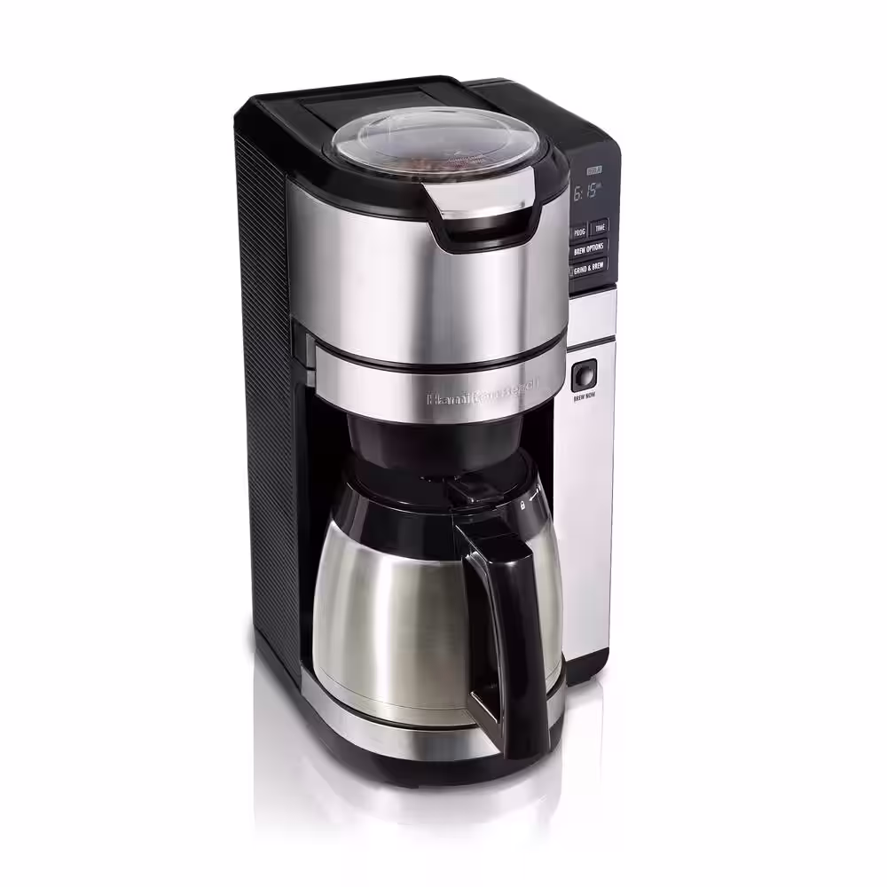 Hamilton Beach 10-Cup Black and Stainless Steel Drip Coffee Maker with Auto-Rising Coffee Grinder